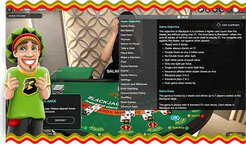 Avattuamme pelin, näemme heti aidon livejakajan, joka jakaa kortteja pöydälle. Ei anneta sen häiritä meitä. Klikkaa vain pientä kysymysmerkkiä. Odota hetki ja näemme blackjackin säännöt. Kuten huomaat, päätavoite pelissä on saada suurempi pistemäärä kuin jakajalla. Pelistä löytyy kuitenkin jippo – et voi ylittää 21 pistettä. Säännöt kuvaavat myös pelin muut tapaukset, paljon pisteitä kortit antavat, mitkä yhdistelmät ovat saatavilla, kuinka kortteja jaetaan ja niin edelleen.